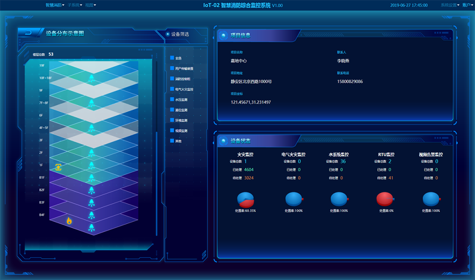 為項(xiàng)目配備智慧消防管理平臺,擁有消防設(shè)施設(shè)備管理功能,以及火災(zāi)報警監(jiān)測、水壓及水位監(jiān)測、水泵控制柜狀態(tài)監(jiān)測、巡檢任務(wù)監(jiān)測等七大應(yīng)用,搭配智慧消防硬件,提升消防管控水平。