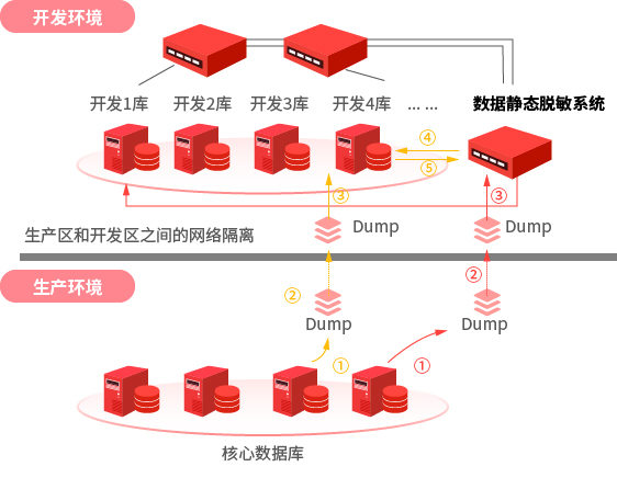 ● 開發(fā)測(cè)試場(chǎng)景 針對(duì)開發(fā)測(cè)試、監(jiān)督管理等場(chǎng)景,自動(dòng)發(fā)現(xiàn)生產(chǎn)環(huán)境中的敏感數(shù)據(jù),按脫敏規(guī)則進(jìn)行變形、漂白、遮蓋等處理,數(shù)據(jù)脫敏后加載到開發(fā)測(cè)試等環(huán)境,防止在使用過程中敏感信息泄露。